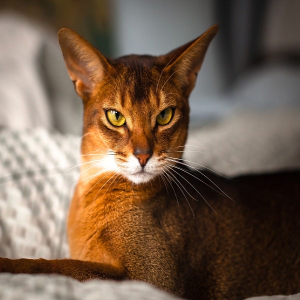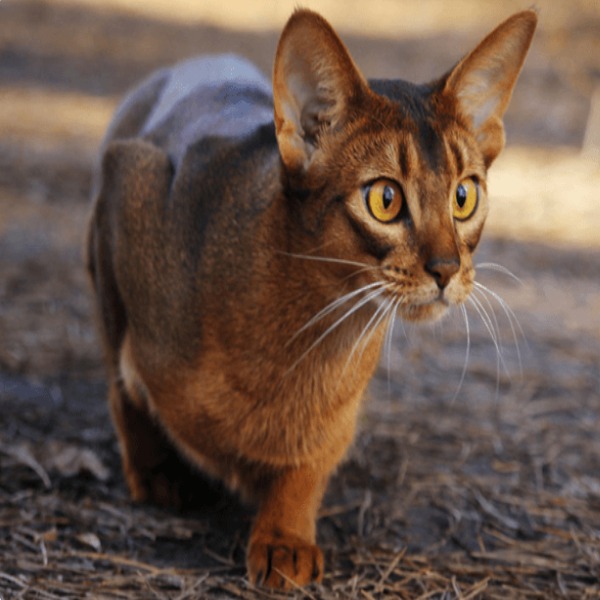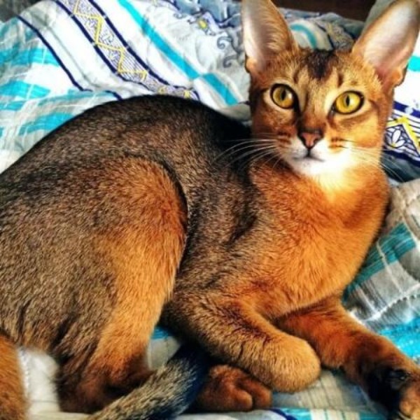 The Abyssinian is often a colorful cat with a distinctly ticked coat, medium in size and regal in appearance; lithe, hard and muscular, showing eager activity and lively interest in their surroundings. They are often well balanced temperamentally and physically.