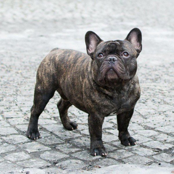 The French Bulldog is small but substantial in build with a powerful muscular body. He sports a short easy-care coat to accompany his easygoing personality. The Frenchie likes to play, but he also enjoys spending his days relaxing on the sofa.
